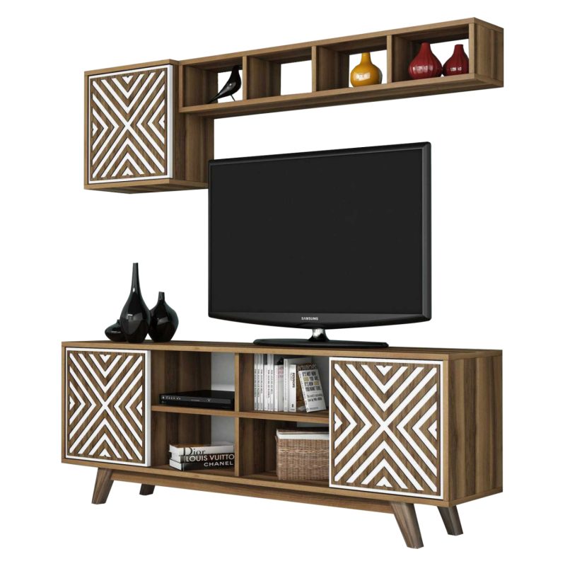 Οι συνθέσεις επίπλων TV προσφέρουν μια λειτουργική και καλαίσθητη λύση για την οργάνωση του χώρου σας, ενώ ταυτόχρονα ενισχύουν τη διακόσμηση του σαλονιού. Με διάφορες επιλογές σε σχέδια, χρώματα και υλικά, μπορούν να προσαρμοστούν στις ανάγκες και το στυλ κάθε σπιτιού. Περιλαμβάνουν χώρους για την τοποθέτηση της τηλεόρασης, αποθηκευτικά ράφια, ντουλάπια και θέσεις για ηλεκτρονικές συσκευές, διατηρώντας τα πάντα τακτοποιημένα.