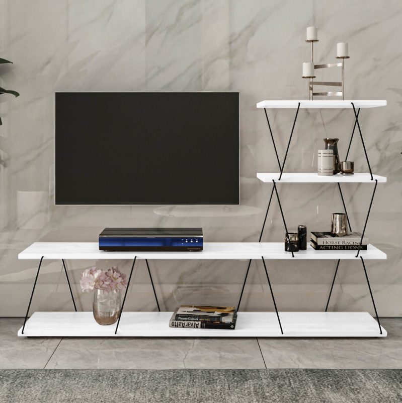 ΕΠΙΠΛΟ ΤΗΛΕΟΡΑΣΗΣ TARS ΜΕΛΑΜΙΝΗ & ΜΕΤΑΛΛΟ HM9098.03 ΛΕΥΚΟ ΜΑΥΡΟ 150x30x93εκ.