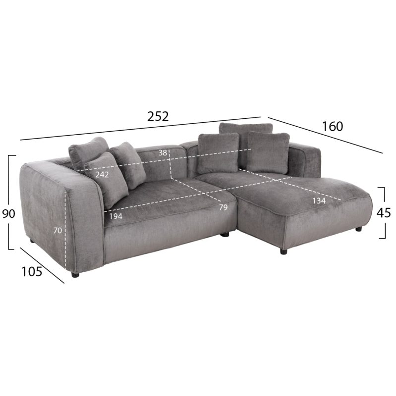 ΚΑΝΑΠΕΣ ΓΩΝΙΑ 3-ΘΕΣΙΟΣ FB93280.03R ΓΚΡΙ ΥΦΑΣΜΑ 252×105-160×70-90Υεκ.