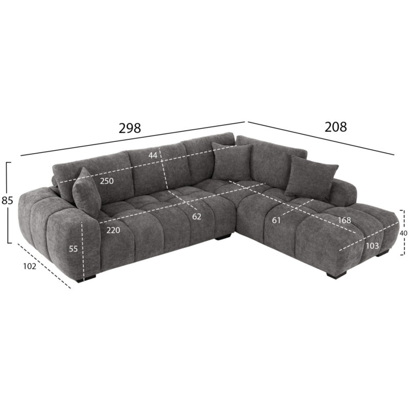 ΚΑΝΑΠΕΣ ΓΩΝΙΑ (ΔΕΞΙΑ) FB93266.03R ΣΚΟΥΡΟ ΓΚΡΙ ΥΦΑΣΜΑ 298×102-208×85Υεκ.