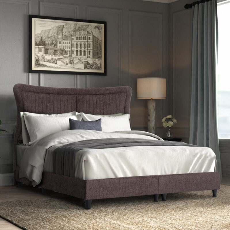 ΚΡΕΒΑΤΙ ΑΠΟ ΓΚΡΙ ΥΦΑΣΜΑ & ΣΚ. ΓΚΡΙ ΡΕΛΙ FB9662.01 ΓΙΑ ΣΤΡΩΜΑ 160×200 EK.