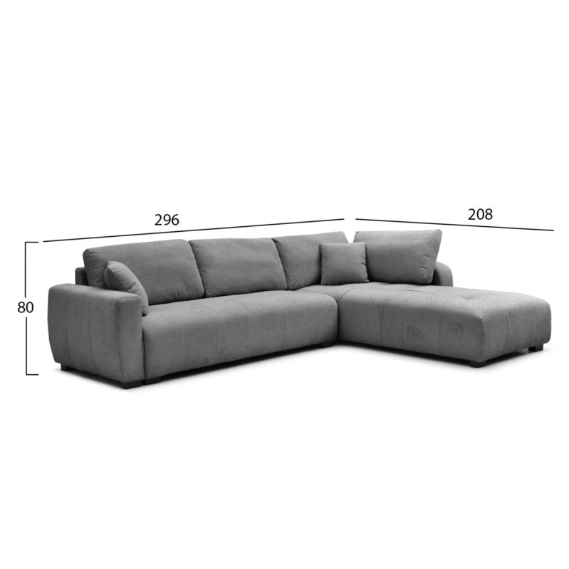 ΚΑΝΑΠΕΣ ΑΡΙΣΤΕΡΗ ΓΩΝΙΑ FB93287.01L ΓΚΡΙ ΡΙΓΕ ΥΦΑΣΜΑ 313×169(γωνία)x80Υεκ.