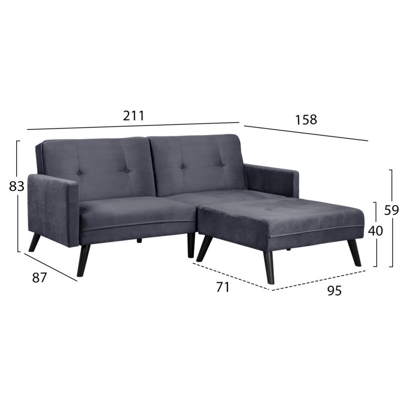 ΚΑΝΑΠΕΣ ΓΩΝΙΑ ΚΡΕΒΑΤΙ FB93151.01 ΒΕΛΟΥΔΟ ΓΚΡΙ ΜΕ ΥΠΟΠΟΔΙΟ 211X158X83Y εκ.