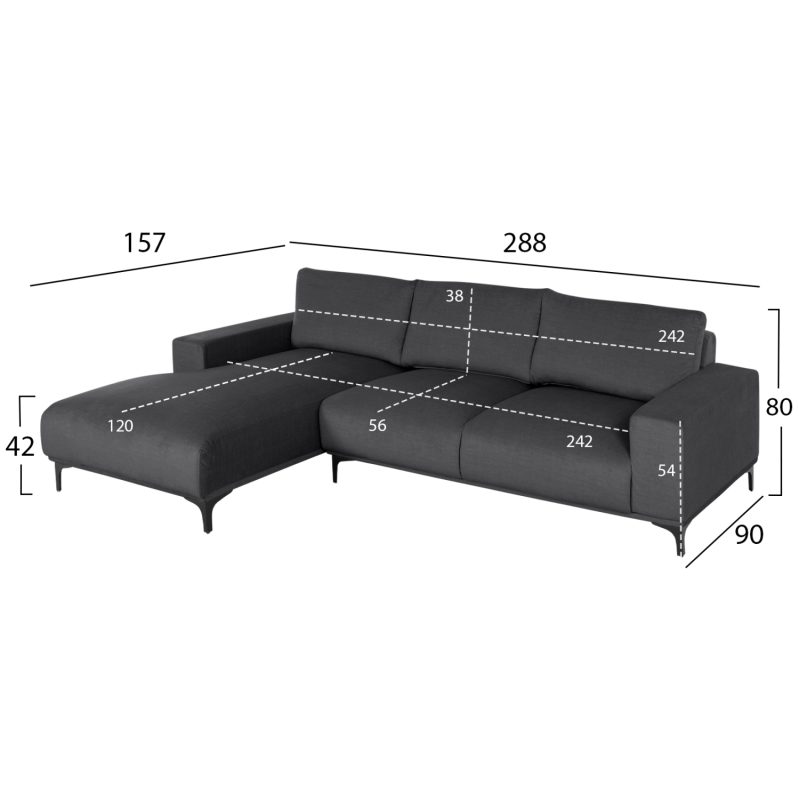 ΚΑΝΑΠΕΣ ΓΩΝΙΑ (ΑΡΙΣΤΕΡΗ) FB93278.02L ΑΝΘΡΑΚΙ ΥΦΑΣΜΑ 288×90-157×67-80Υεκ.