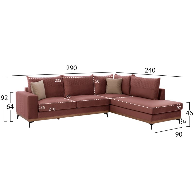 ΚΑΝΑΠΕΣ ΚΡΕΒΑΤΙ ΓΩΝΙΑ ΑΝΑΣΤΡΕΨΙΜΗ FB93153.02 ΒΕΛΟΥΔΟ ΣΑΠΙΟ ΜΗΛΟ 267x153x85 εκ