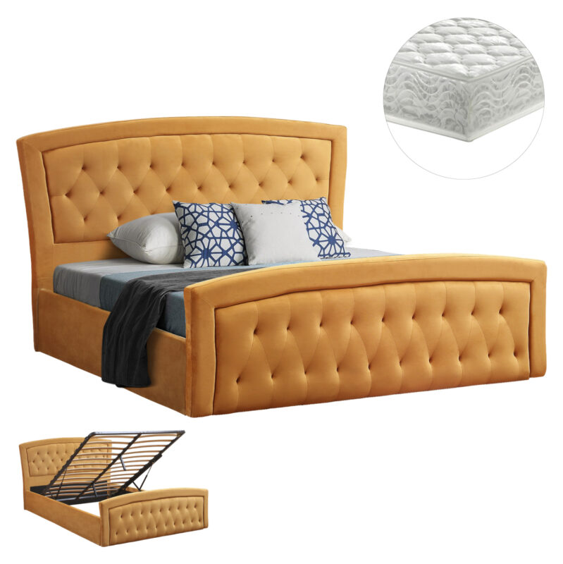 ΚΡΕΒΑΤΙ ΜΕ ΣΤΡΩΜΑ & ΑΠΟΘ.ΧΩΡΟ FB921279.03 ΧΡΥΣΟ ΒΕΛΟΥΔΟ–ΓΙΑ 160×200εκ