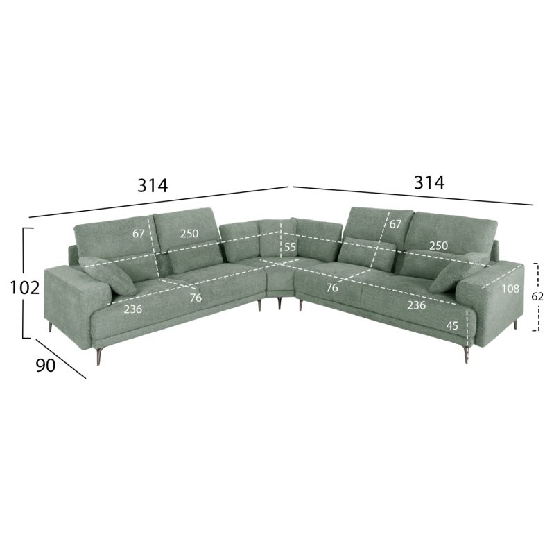 ΚΑΝΑΠΕΣ ΓΩΝΙΑ FB93269.06 ΜΕΝΤΑ ΥΦΑΣΜΑ-ΑΝΘΡΑΚΙ ΠΟΔΙΑ 314x314x90-102Yεκ.