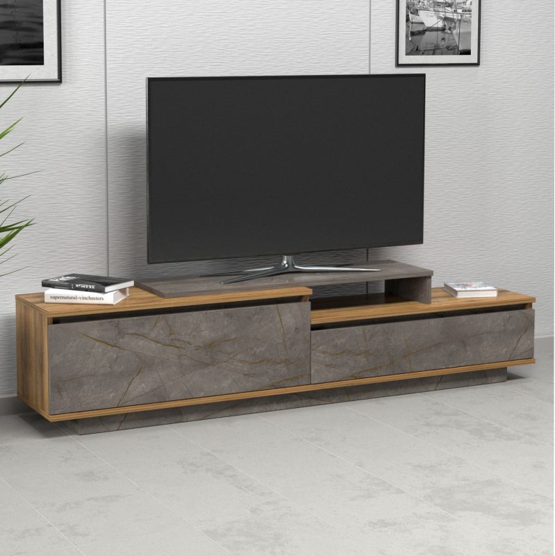 ΕΠΙΠΛΟ TV FB918186 ΜΕΛΑΜΙΝΗ ΣΕ ΦΥΣΙΚΟ ΞΥΛΟΥ & ΟΨΗ ΓΚΡΙ ΜΑΡΜΑΡΟ 180x35x42Υεκ.
