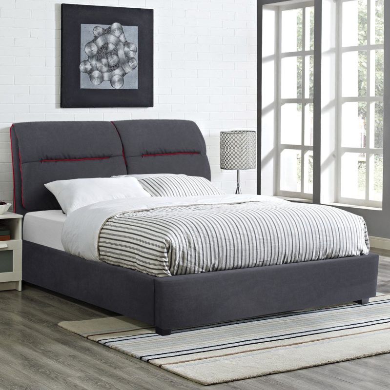 ΚΡΕΒΑΤΙ ΔΙΠΛΟ ΓΙΑ ΣΤΡΩΜΑ 150×200 εκ. ΜΕ ΥΦΑΣΜΑ ΓΚΡΙ ΚΑΙ ΚΟΚΚΙΝΗ ΡΙΓΑ FB9562