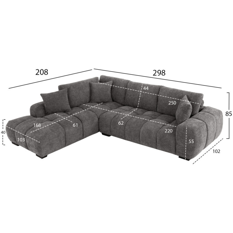 ΚΑΝΑΠΕΣ ΓΩΝΙΑ ΑΡΙΣΤΕΡΗ FB93087L ΥΦΑΣΜΑ ΓΚΡΙ 282x197x90Υ εκ.