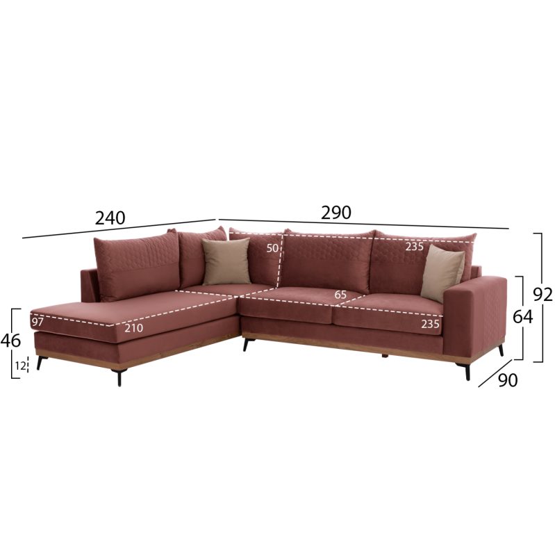 ΚΑΝΑΠΕΣ ΓΩΝΙΑ ΑΡΙΣΤΕΡΗ FB93086L ΥΦΑΣΜΑ ΜΠΕΖ 282x197x90 εκ.