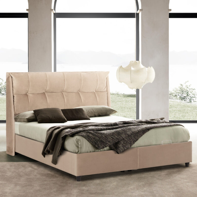 ΚΡEΒΑΤΙ ΜΕ ΑΠΟΘΗΚΕΥΤΙΚΟ ΧΩΡΟ FB9716 ΜΠΕΖ ΒΕΛΟΥΔΟ- ΓΙΑ ΣΤΡΩΜΑ 160×200εκ.