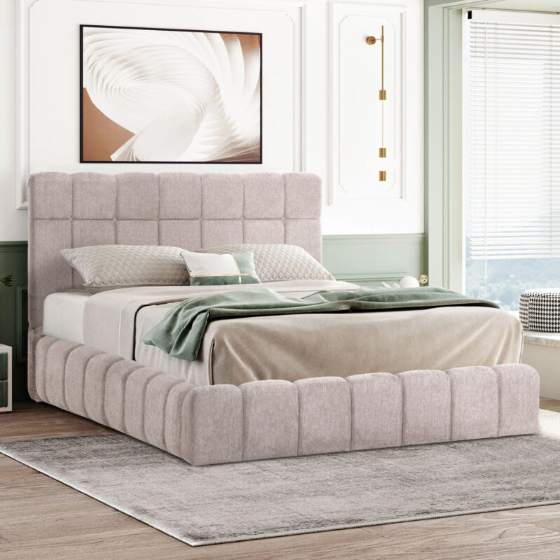 ΚΡΕΒΑΤΙ ΜΕ ΑΠΟΘ. ΧΩΡΟ FB9720.10 ΥΦΑΣΜΑ TEDDY ΜΠΕΖ-ΓΙΑ ΣΤΡΩΜΑ 160×200εκ