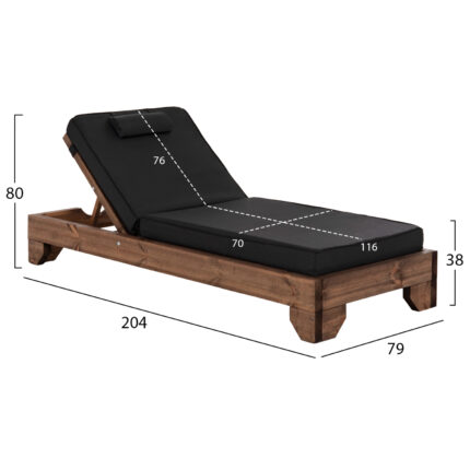 ΞΑΠΛΩΣΤΡΑ ΜΕ ΜΑΞΙΛΑΡΙ FB910790.05T ΞΥΛΟ ΠΕΥΚΟΥ--TEXTILENE ΣΕ ΜΑΥΡΟ 79x204x77Υεκ