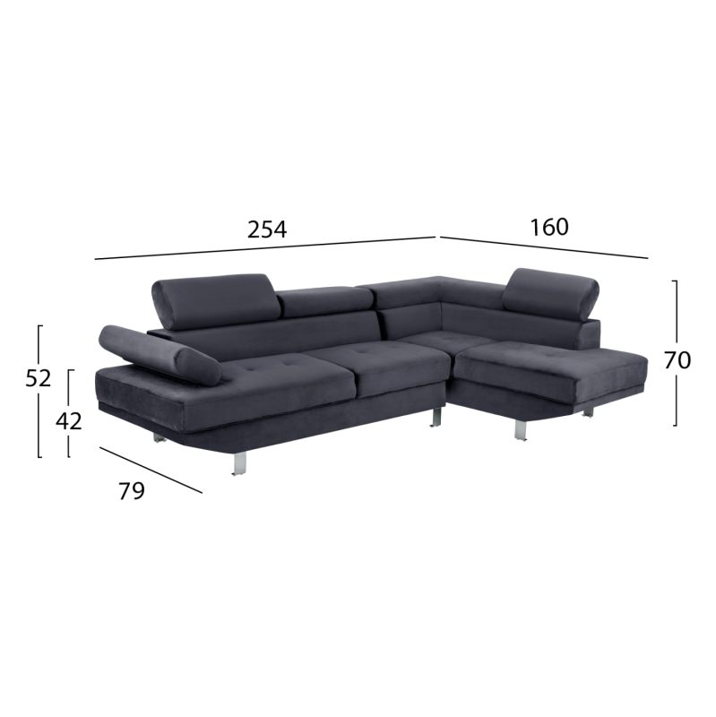 ΚΑΝΑΠΕΣ ΓΩΝΙΑ ΒΕΛΟΥΔΟ ΓΚΡΙ FB93156.01 254×79-160×70-84 εκ.