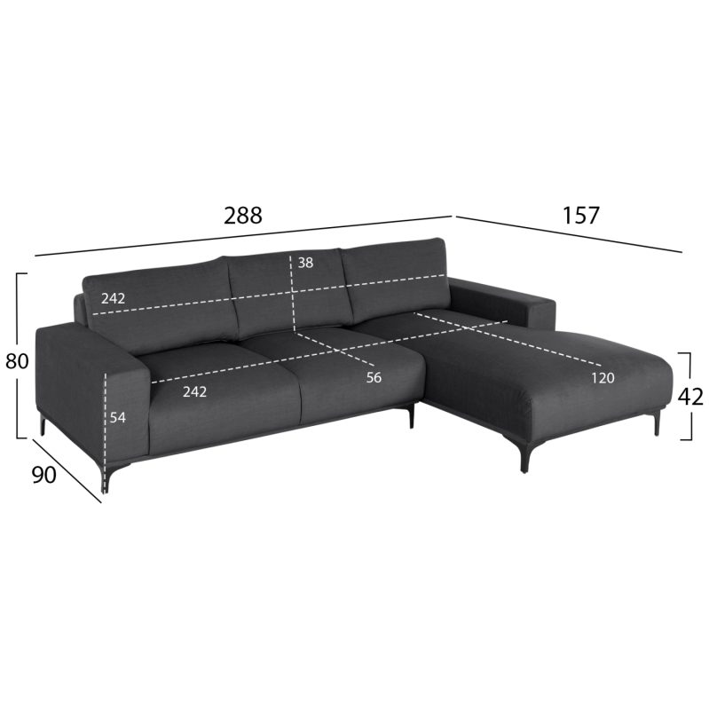 ΚΑΝΑΠΕΣ ΓΩΝΙΑ (ΔΕΞΙΑ) FB93278.02R ΑΝΘΡΑΚΙ ΥΦΑΣΜΑ 288×90-157×67-80Υεκ.