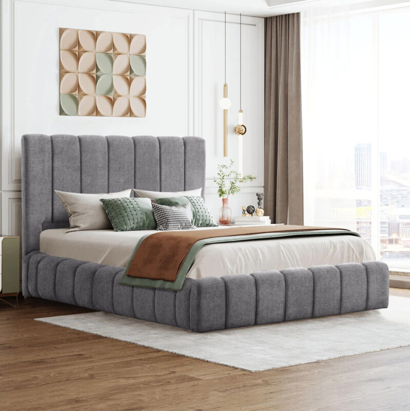 ΚΡΕΒΑΤΙ ΜΕ ΑΠΟΘΗΚΕΥΤΙΚΟ ΧΩΡΟ FB9719.22 ΥΦΑΣΜΑ TEDDY ΓΚΡΙ-ΓΙΑ ΣΤΡΩΜΑ 160×200εκ