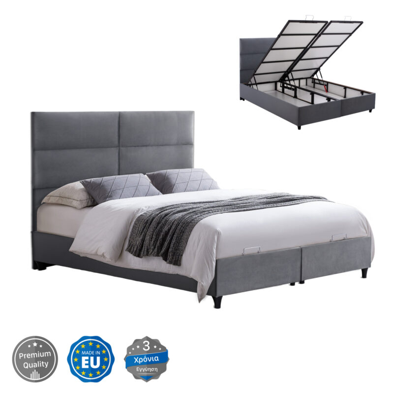 ΚΡΕΒΑΤΙ ΜΕ ΑΠΟΘ.ΧΩΡΟ FB9738.10 ΓΚΡΙ ΒΕΛΟΥΔΟ– ΓΙΑ ΣΤΡΩΜΑ 140×200εκ