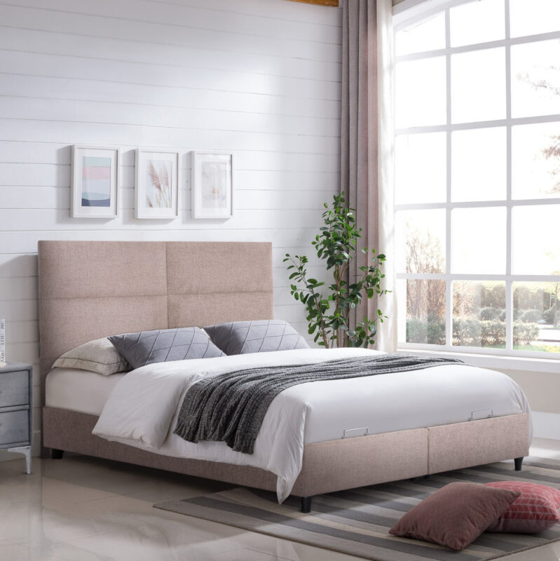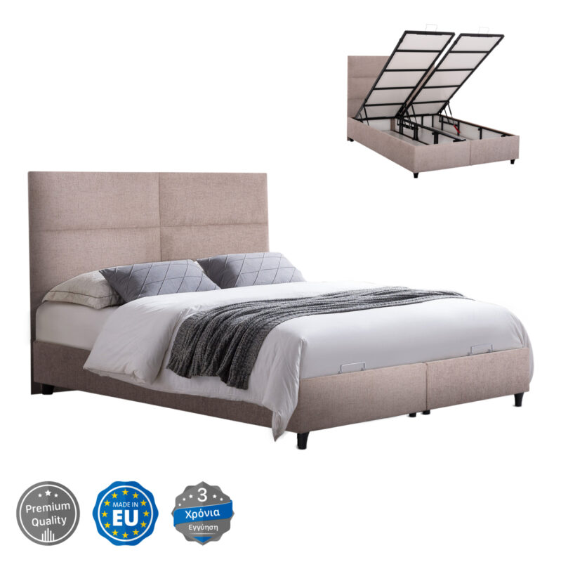 ΚΡΕΒΑΤΙ ΜΕ ΣΤΡΩΜΑ ΔΙΠΛO FB921165 ΜΠΕΖ ΥΦΑΣΜΑ & ΑΠΟΘ.ΧΩΡΟΣ-ΓΙΑ 160×200εκ.