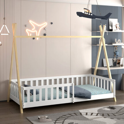 ΚΡΕΒΑΤΙ ΠΑΙΔΙΚΟ ΜΕ ΚΑΓΚΕΛΑ FB921325 ΠΕΥΚΟ ΛΕΥΚΟ/ΦΥΣΙΚΟ--ΜΕ ΣΤΡΩΜΑ 90x190εκ
