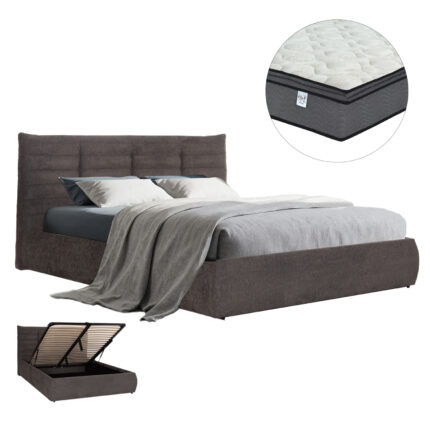 ΚΡΕΒΑΤΙ ΔΙΠΛΟ & ΣΤΡΩΜΑ FB910770 ΓΚΡΙ ΥΦΑΣΜΑ ΜΕ ΑΠΟΘ.ΧΩΡΟ--ΓΙΑ 160x200εκ