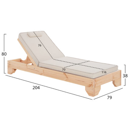 ΞΑΠΛΩΣΤΡΑ ΜΕ ΜΑΞΙΛΑΡΙ FB910789.60T ΞΥΛΟ ΠΕΥΚΟΥ--TEXTILENE ΕΚΡΟΥ 79x204x77Υεκ