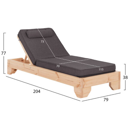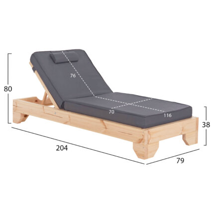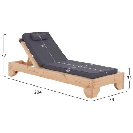 ΞΑΠΛΩΣΤΡΑ ΜΕ ΜΑΞΙΛΑΡΙ FB910796.30T ΞΥΛΟ ΠΕΥΚΟΥ--TEXTILENE ΓΚΡΙ 79x204x80Υεκ
