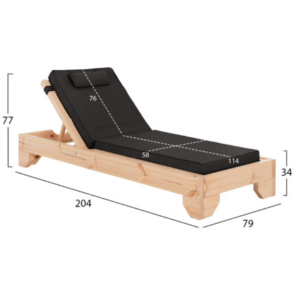 ΞΑΠΛΩΣΤΡΑ ΜΕ ΜΑΞΙΛΑΡΙ FB910790.05T ΞΥΛΟ ΠΕΥΚΟΥ--TEXTILENE ΣΕ ΜΑΥΡΟ 79x204x77Υεκ
