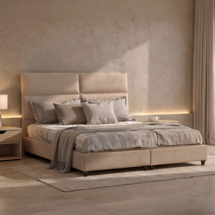 ΚΡΕΒΑΤΙ ΥΠΕΡΔΙΠΛΟ ΑΠΟ ΣΚΟΥΡΟ ΜΠΕΖ ΥΦΑΣΜΑ FB9628.22 ΓΙΑ ΣΤΡΩΜΑ 180x200 εκ.
