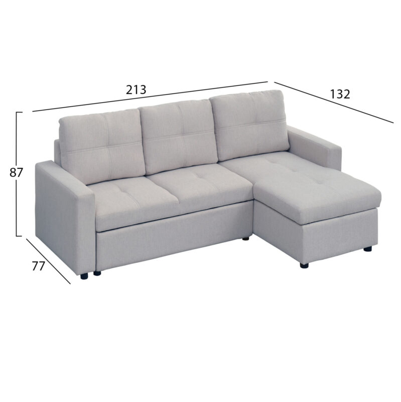 ΓΩΝΙΑΚΟΣ ΚΑΝΑΠΕΣ-ΚΡΕΒΑΤΙ ΑΝΑΣΤΡΕΨΙΜΟΣ FB93285.01 ΓΚΡΙ ΥΦΑΣΜΑ 213x132x87Yεκ