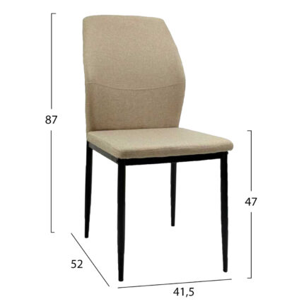 ΚΑΡΕΚΛΑ ΤΡΑΠΕΖΑΡΙΑΣ FB918347.04 ΜΠΕΖ ΥΦΑΣΜΑ-ΜΕΤΑΛ. ΠΟΔΙΑ ΜΑΥΡΑ 42x58x89,5Υεκ Καρέκλα Τραπεζαρίας FB918347.04 – ΜΠΕΖ/ΜΑΥΡΟ Η καρέκλα τραπεζαρίας FB918347.04 συνδυάζει λιτή αισθητική