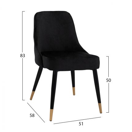 ΚΑΡΕΚΛΑ FB98527.14 ΒΕΛΟΥΔΟ ΜΑΥΡΟ ΜΕ ΜΑΥΡΑ ΜΕΤΑΛΛΙΚΑ ΠΟΔΙΑ 51x54x83,5Υεκ. Η καρέκλα τραπεζαρίας FB98527.14 είναι μοντέρνα, άνετη και σταθερή! Το κάθισμα