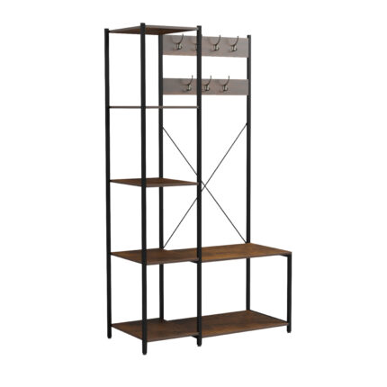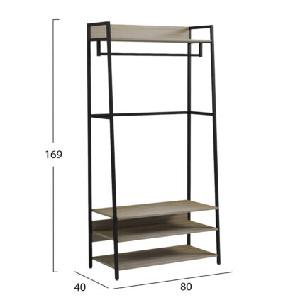ΕΠΙΠΛΟ ΕΙΣΟΔΟΥ/ΑΝΟΙΧΤΗ ΝΤΟΥΛΑΠΑ FB918083 ΜΕΤΑΛΛΟ ΜΑΥΡΟ-ΜΕΛΑΜΙΝΗ ΚΑΦΕ 100x46x180Υεκ. Το επιδαπέδιο έπιπλο εισόδου σε στυλ ανοιχτής ντουλάπας FB918083 είναι ψηλό και