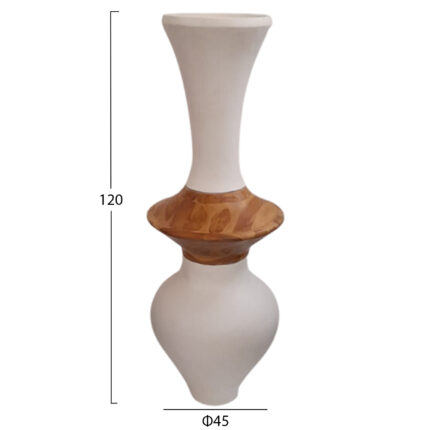 ΔΙΑΚΟΣΜΗΤΙΚΟ ΒΑΖΟ ΔΑΠΕΔΟΥ FB94660.02L FIBER CEMENT ΛΕΥΚΟ–ΞΥΛΟ ΤΕΑΚ Φ45×172Υεκ Το χειροποίητο διακοσμητικό βάζο δαπέδου FB94660.02L είναι ένα πολύ ιδιαίτερο διακοσμητικό