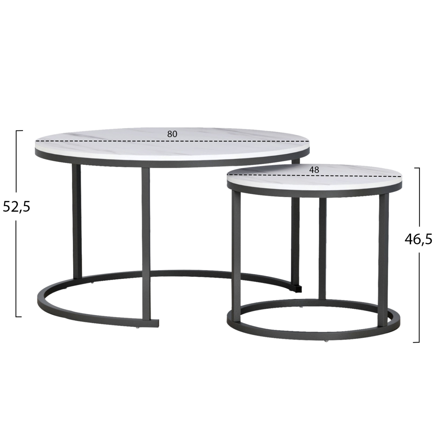 FB98763.12- Σετ 2 τραπεζάκια σε στυλ ζιγκόν με μεταλλικές βάσεις και επιφάνειες mdf σε χρώμα ΛΕΥΚΟ ΜΑΡΜΑΡΟ.