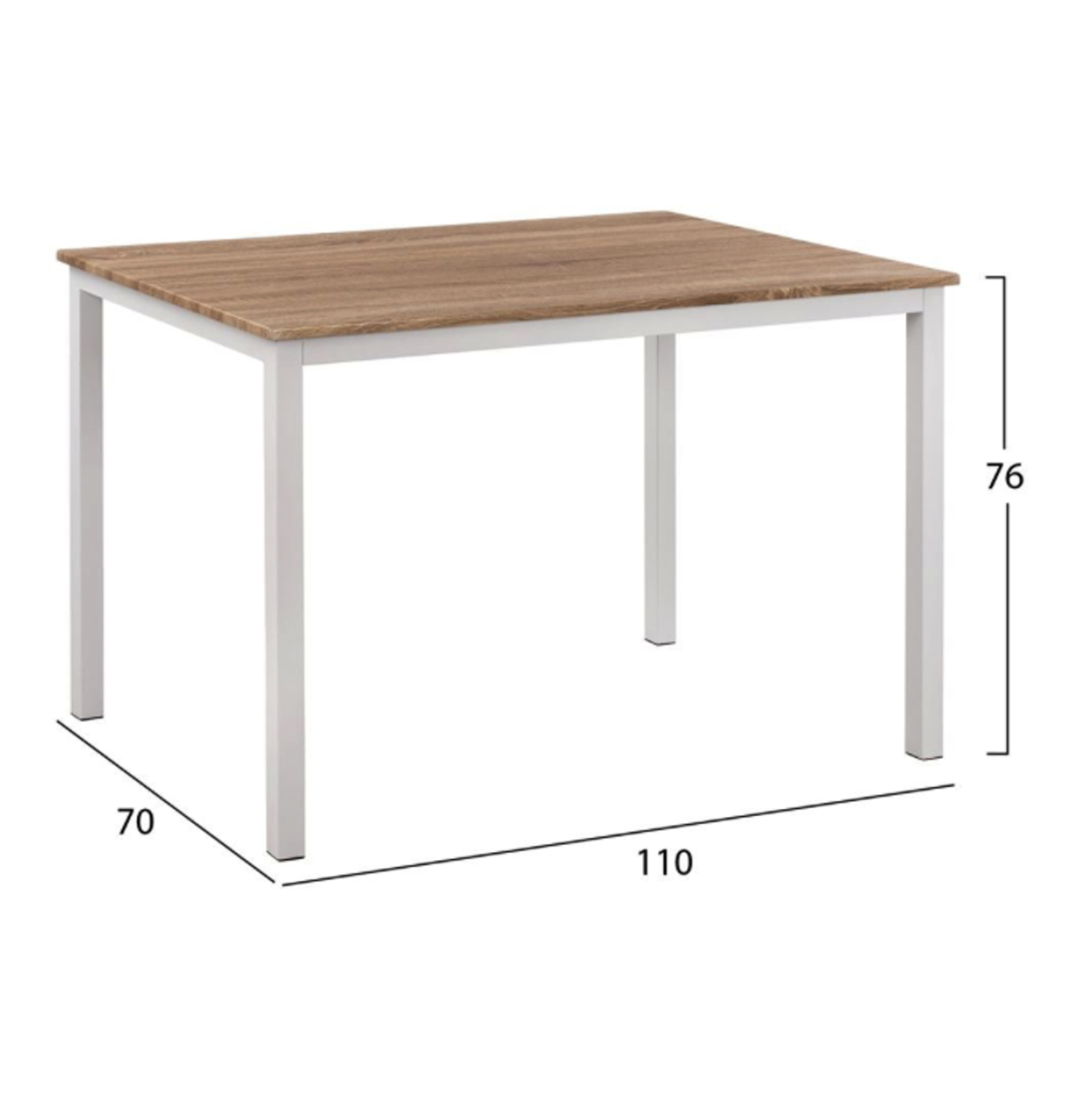 – ένα ελκυστικό μοντέρνο τραπέζι με μεταλλική βάση λευκής απόχρωσης και sonama επιφάνεια από mdf.