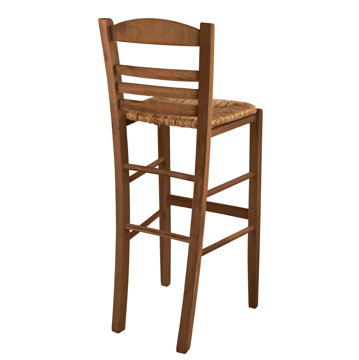 Σκαμπό καφενείου επιλοχία με ψάθα από μασίφ ξύλο φουρνιστής οξιάς εμποτισμού σε καρυδί απόχρωση.