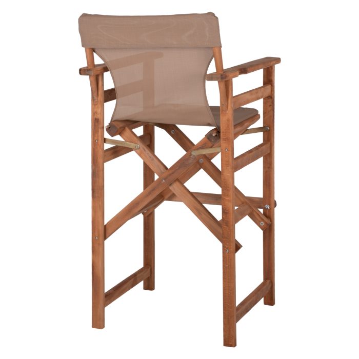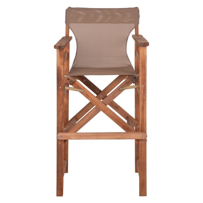 Το FB910374.04 είναι ένα σκαμπό-μπαρ με πλάτη που θα ενθουσιάσει. Στην πραγματικότητα είναι μια καρέκλα σκηνοθέτη σε ψηλή έκδοση. Δεν χρειάζεται ιδιαίτερη περιγραφή μιας και όλοι γνωρίζουν τι θα πει καρέκλα σκηνοθέτη. Είναι πτυσσόμενη και σταθερή και τo MOKA χρώμα του textilene στην πλάτη και το κάθισμα μπορεί πολύ εύκολα να συνδυαστεί με κάθε είδους διακοσμητικό μοτίβο που επιλέγετε για τον χώρο σας, είτε είναι η αυλή ή το μπαλκόνι του σπιτιού σας, είτε ο επαγγελματικός σας χώρος.