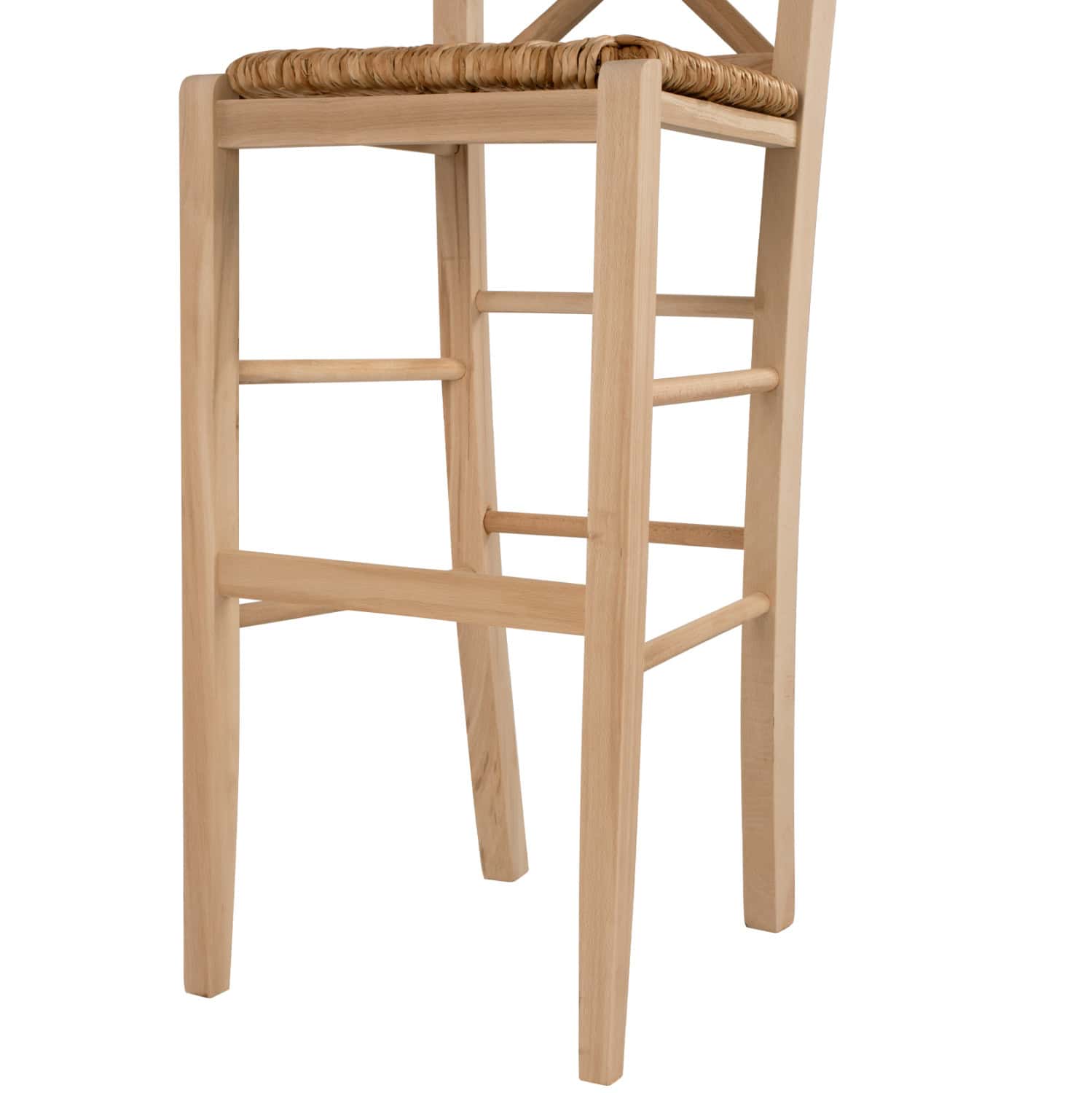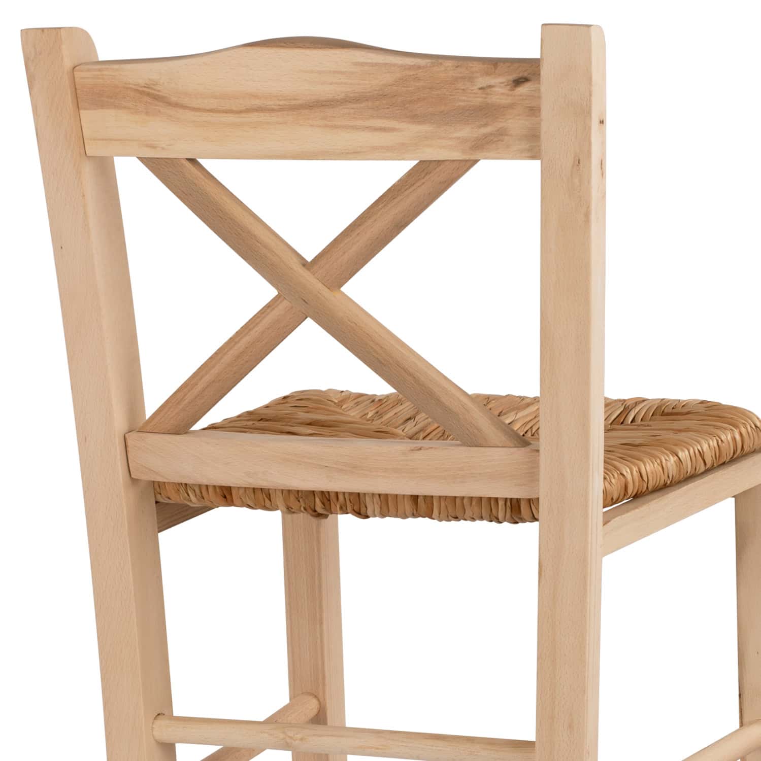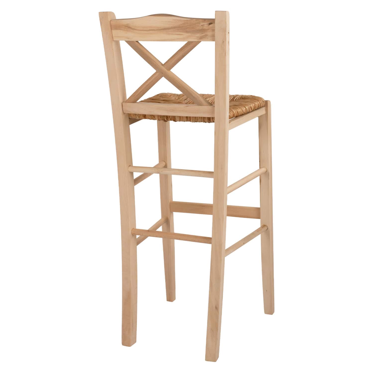 Σκαμπό καφενείου με χιαστή πλάτη και ψάθα από μασίφ ξύλο φουρνιστής οξιάς άβαφο.