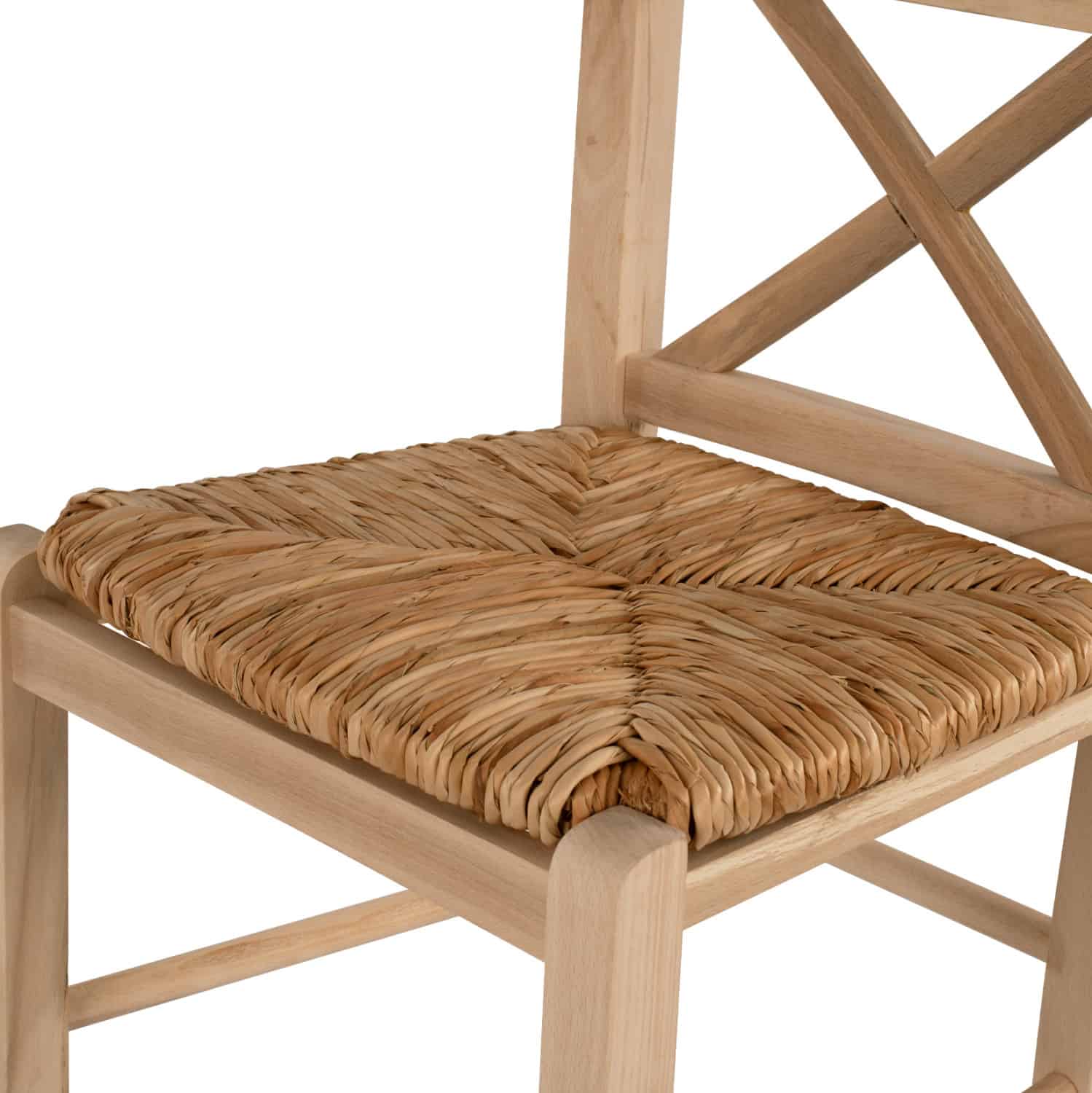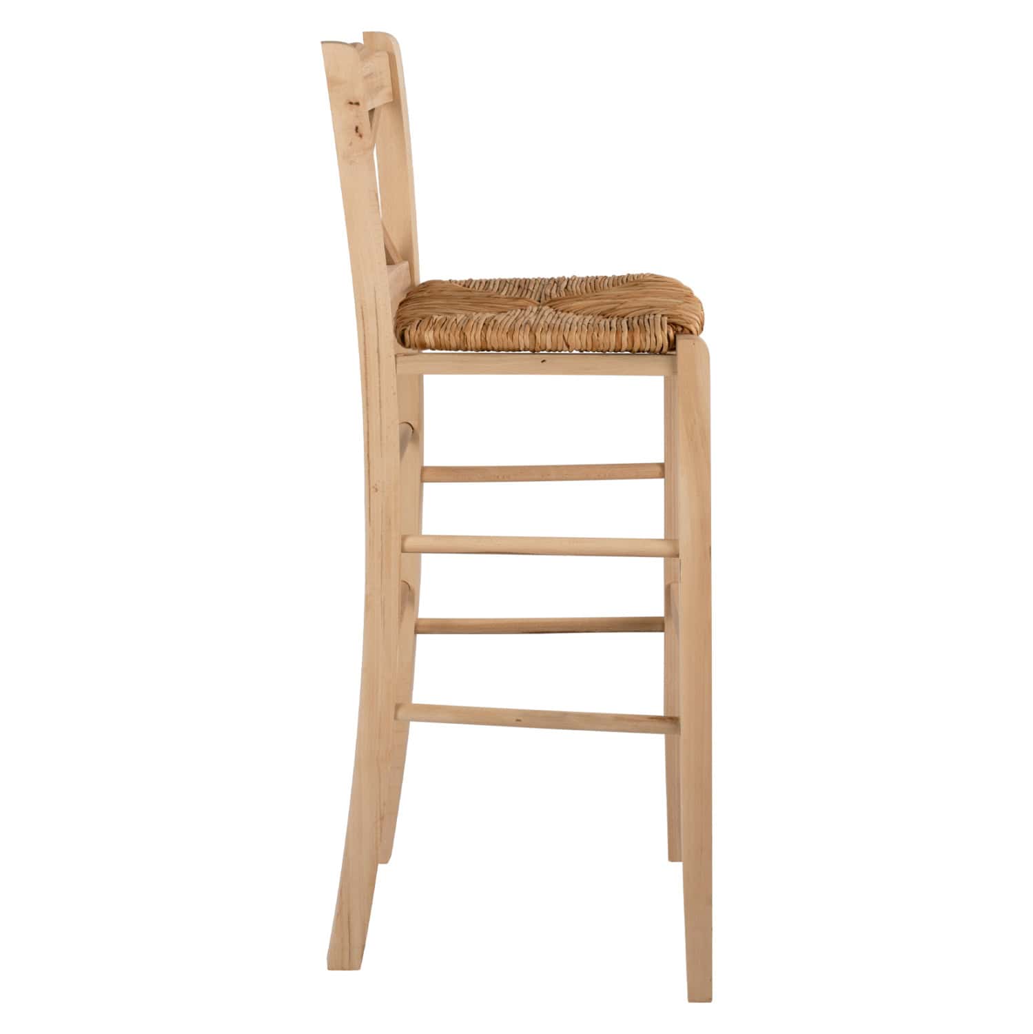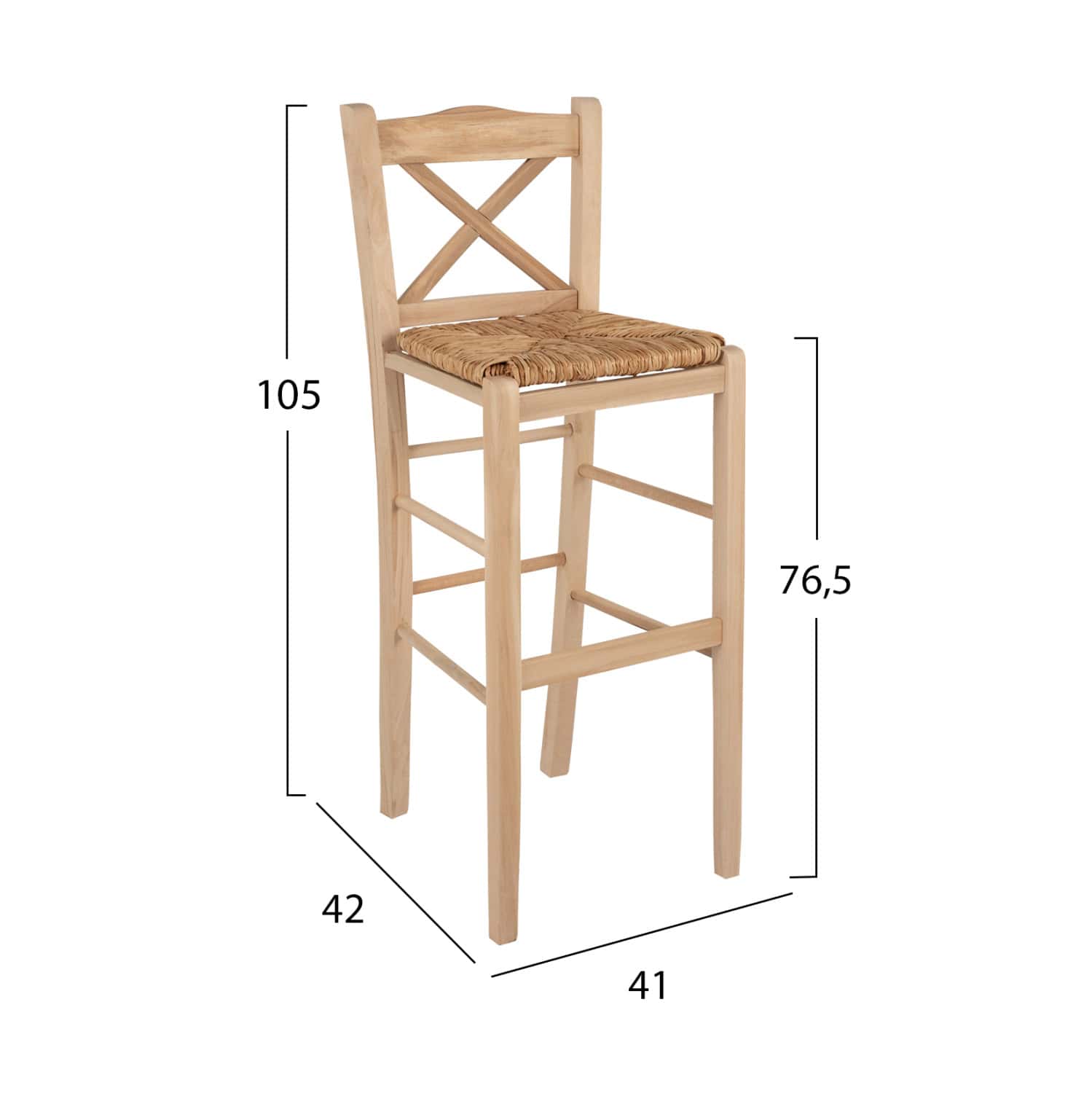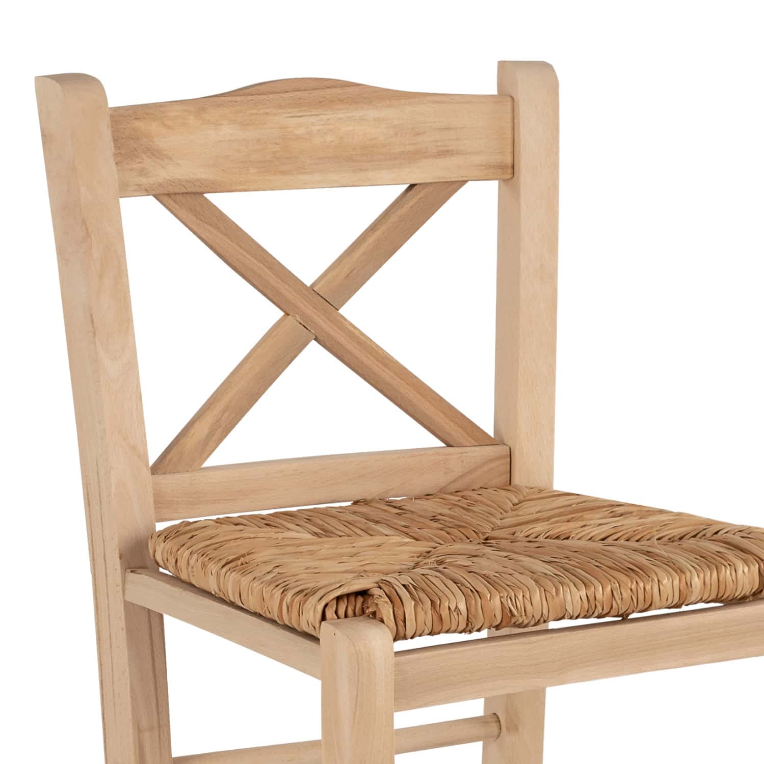 Σκαμπό καφενείου με χιαστή πλάτη και ψάθα από μασίφ ξύλο φουρνιστής οξιάς άβαφο.