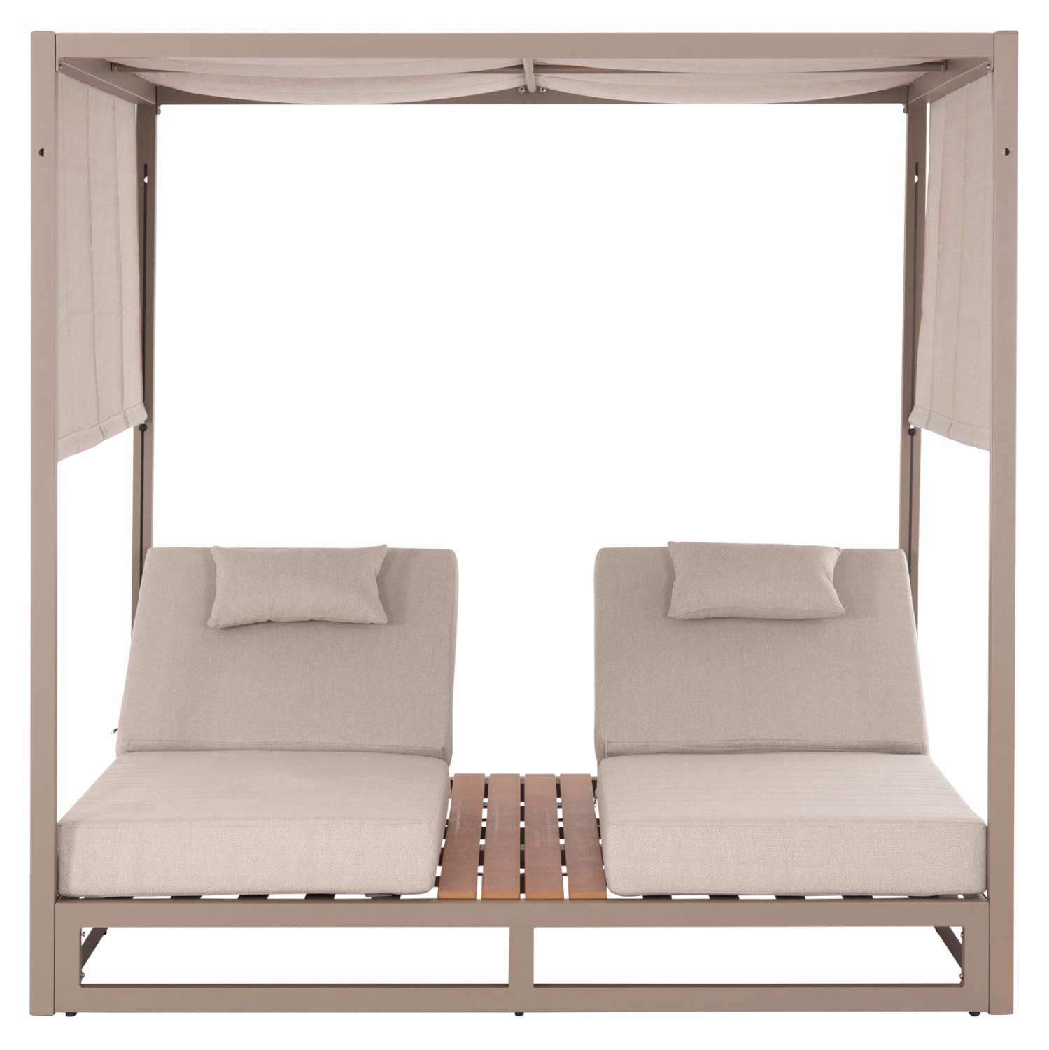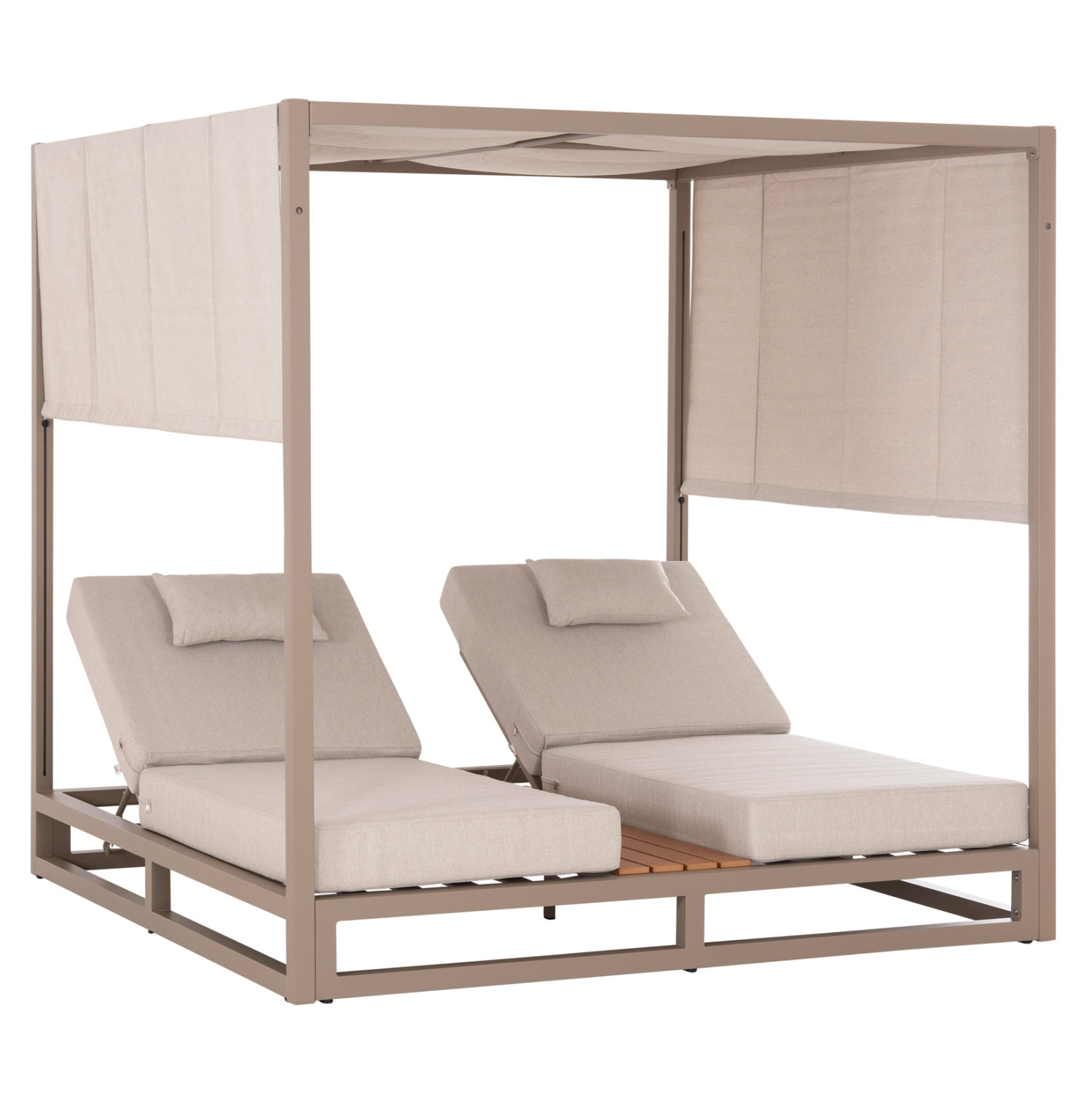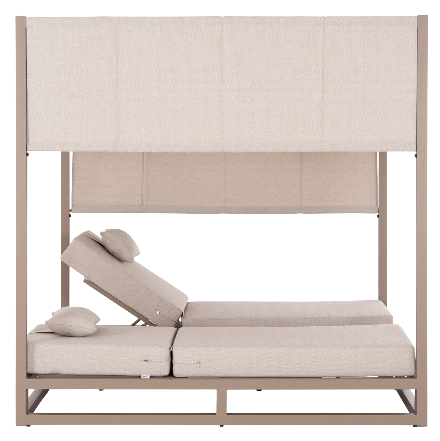 Η επαγγελματική διπλή ξαπλώστρα παραλίας FB96097.04 σε ΚΑΠΟΥΤΣΙΝΟ χρώμα, είναι μια πολυτελής πρόταση για την επιχείρησή σας. Η στιβαρή και εντυπωσιακή παρουσία της που οφείλεται στο design κύβος αλλά και στα υλικά κατασκευής της, κυριολεκτικά κλέβουν την παράσταση. Το παχύ στρώμα με τα μαξιλαράκια κεφαλής και η επιφάνεια από polywood στην μέση υπόσχονται στιγμές ξενοιασιάς και χαλάρωσης, όπως και το σκίαστρο που προστατεύει από τον ήλιο. TIP: Το σκίαστρο ανεβοκατεβαίνει στις δύο πλευρές ταυτόχρονα με μηχανισμό, μιας και αποτελείται από ένα συνεχόμενο ύφασμα.