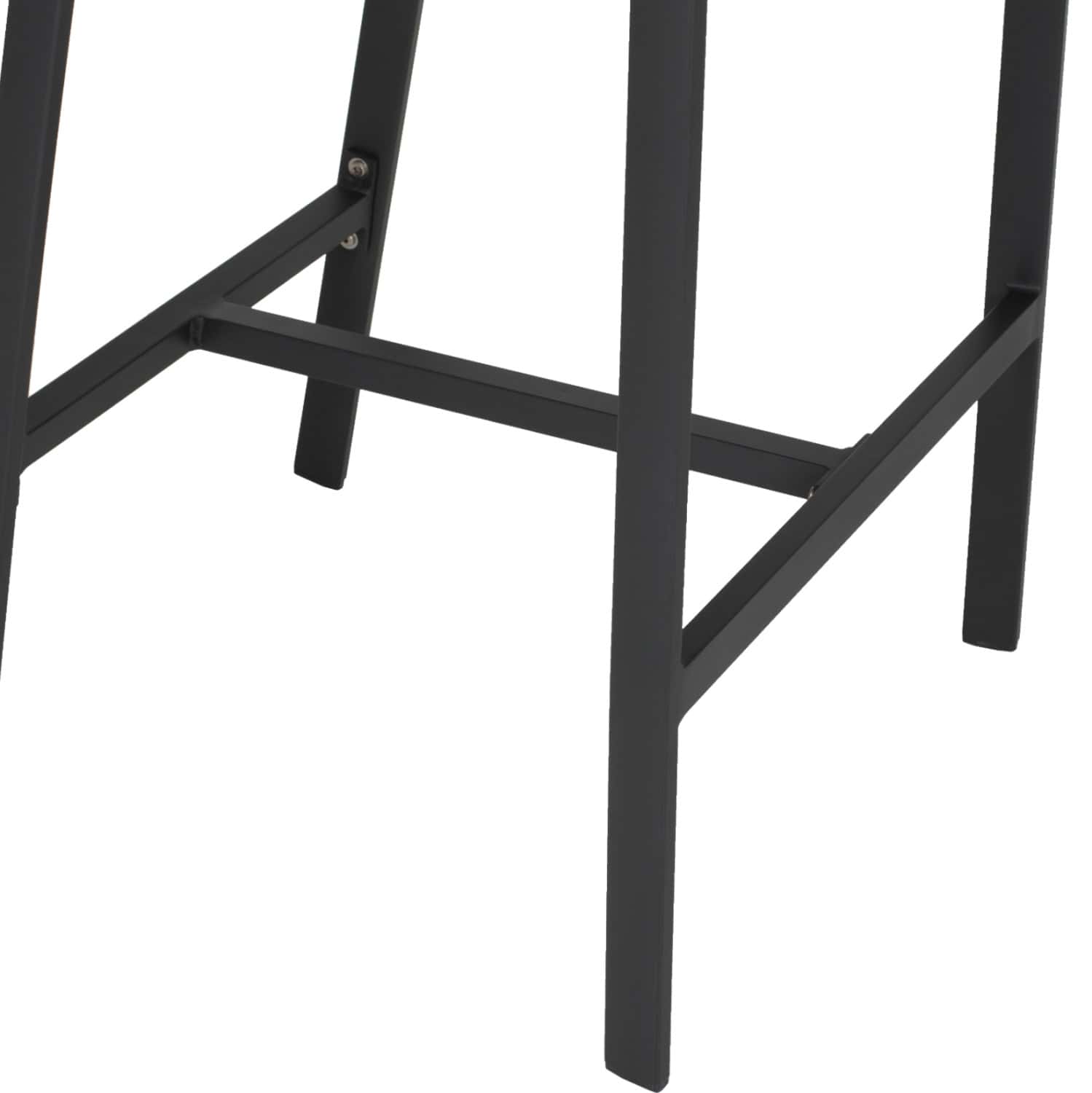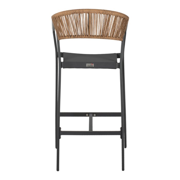 Η πλάτη του σκαμπό είναι επενδυμένη με πολυεστερικό RATTAN. Στα περισσότερα έπιπλα κήπου και γενικά σε έπιπλα για εξωτερικούς χώρους χρησιμοποιείται συνθετικό υλικό από PVC, δηλαδή τεχνητές ίνες υψηλής ποιότητας. Αυτό δίνει στην κατασκευή εξαιρετική αντοχή και ανθεκτικότητα σε ακραίες συνθήκες ζέστης ή κρύου.