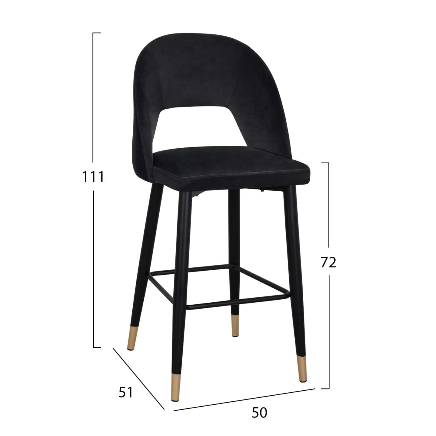 Το σκαμπό FB98526.04 είναι επενδυμένο με ύφασμα βελούδο σε μαύρη απόχρωση με μεταλλικό σκελετό σε μαύρη ματ απόχρωση και χρυσές λεπτομερείς.