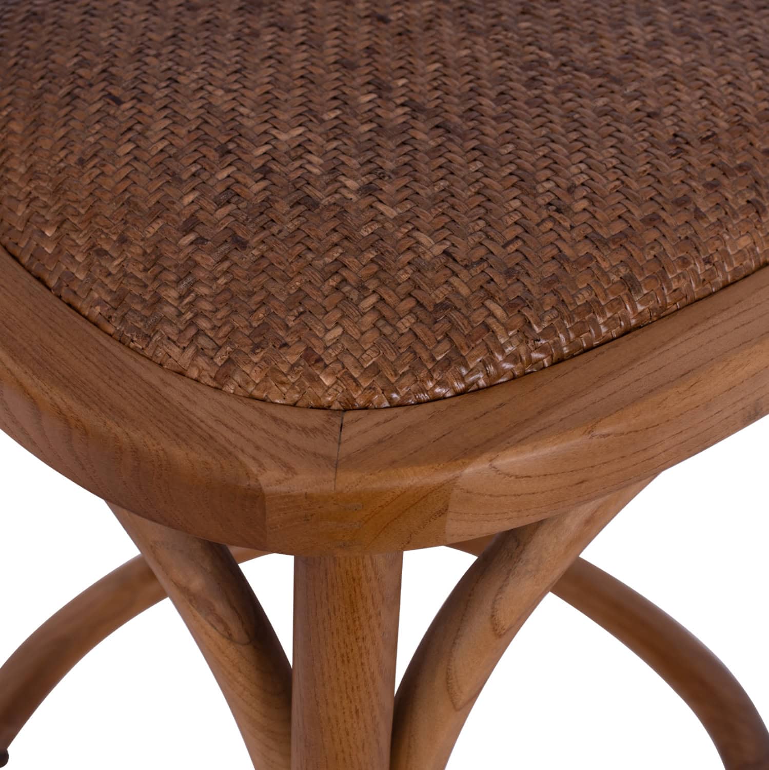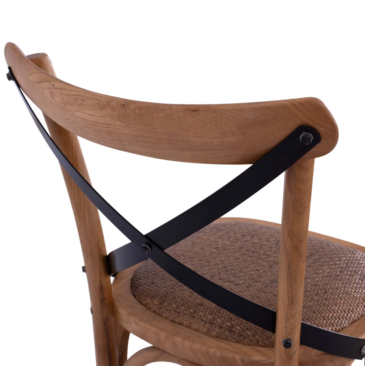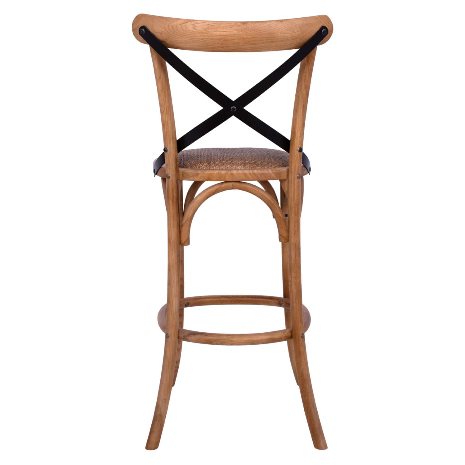 Σκαμπώ Bar ξύλινο υψηλής ποιότητας, με μεταλλικό χιαστί στη πλάτη σε μαύρο χρώμα και κάθισμα από ψάθα.