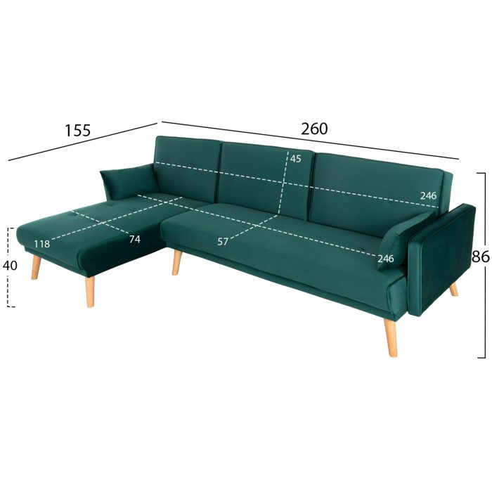 ΓΩΝΙΑΚΟΣ ΚΑΝΑΠΕΣ-ΚΡΕΒΑΤΙ ΑΝΑΣΤΡΕΨΙΜΟΣ FB93127.13 ΚΥΠΑΡΙΣΣΙ ΒΕΛΟΥΔΟ 260x155x86Υεκ