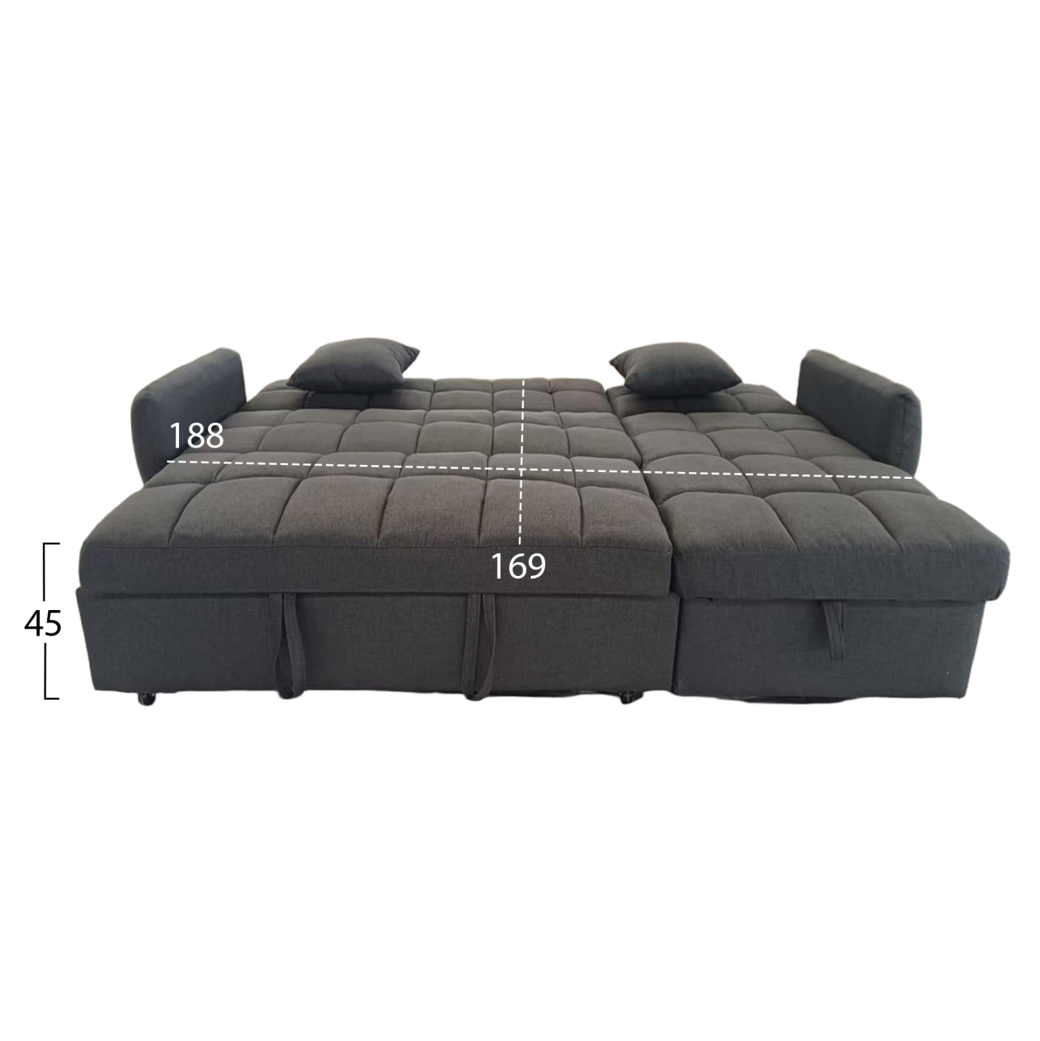 ΓΩΝΙΑΚΟΣ ΚΑΝΑΠΕΣ-ΚΡΕΒΑΤΙ ΑΝΑΣΤΡΕΨΙΜΟΣ FB93294.01 ΓΚΡΙ ΥΦΑΣΜΑ 213x145x83Υεκ.