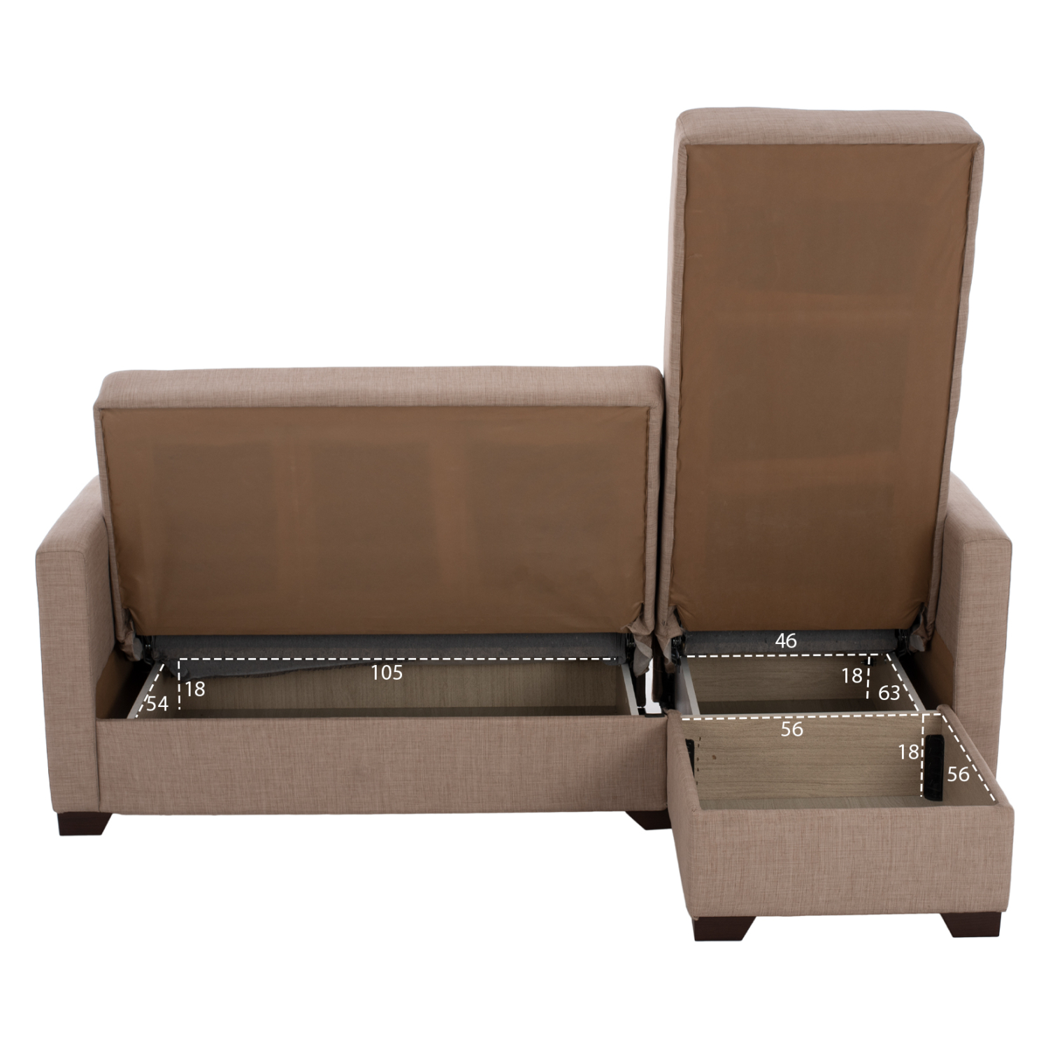 Αποθηκευτικός χώρος: 105x54x18Υ εκ.(στο κύριο κομμάτι)