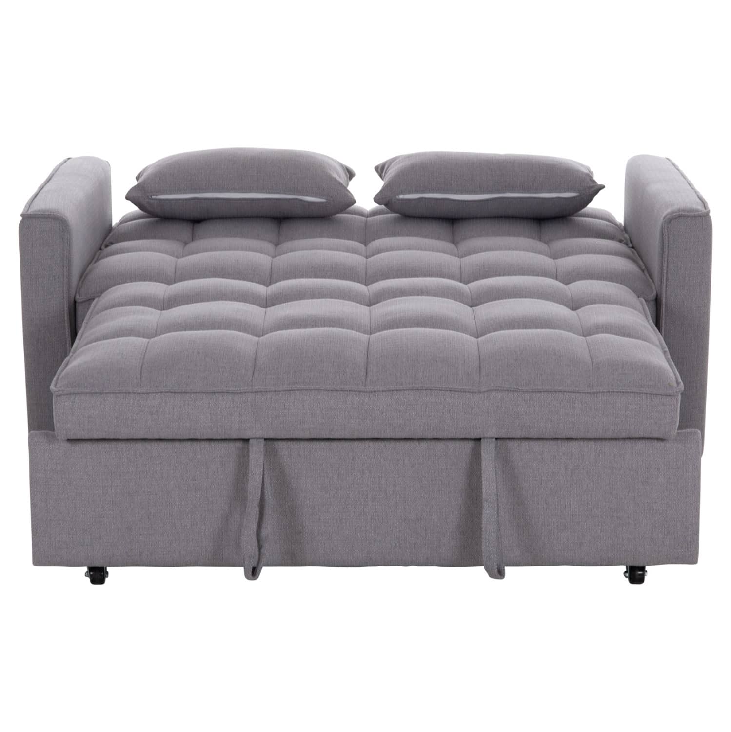 Ο διθέσιος καναπές FB93289.01 είναι ποιοτικός και πρακτικός. Έχει πολύ χαμηλά πόδια ενώ τα μπράτσα του διαθέτουν θήκες («τσέπες») στο εξωτερικό τους για πρόχειρη τοποθέτηση διάφορων αντικειμένων. Είναι επενδυμένος με ποιοτικό ύφασμα σε ΓΚΡΙ χρώμα και συνοδεύεται από δύο πλαϊνά μαξιλαράκια. Αυτό που τον κάνει όμως να ξεχωρίζει είναι ότι μετατρέπεται σε κρεβάτι πολύ εύκολα τραβώντας προς τα έξω με δύο ιμάντες το αναδιπλούμενο κρεβάτι που βρίσκεται κάτω από το κάθισμα.