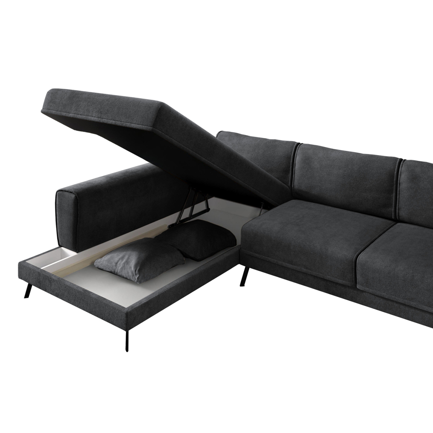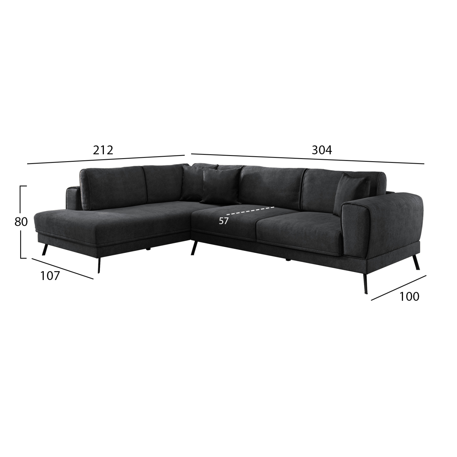 ΚΑΝΑΠΕΣ ΚΡΕΒΑΤΙ ΑΡΙΣΤΕΡΗ ΓΩΝΙΑ FB93337.01L ΣΚΟΥΡΟ ΓΚΡΙ ΥΦΑΣΜΑ 304x212x80Υεκ