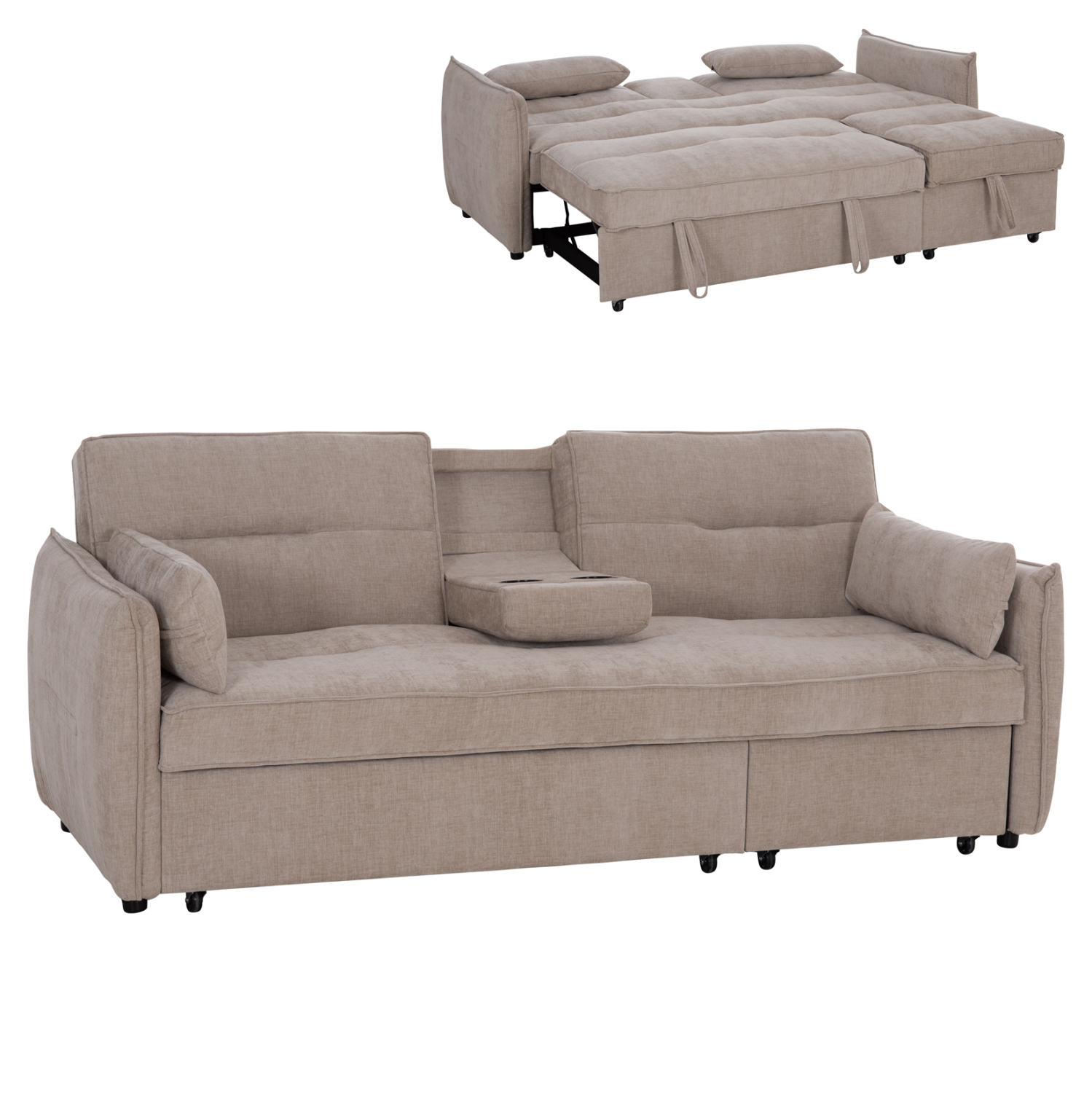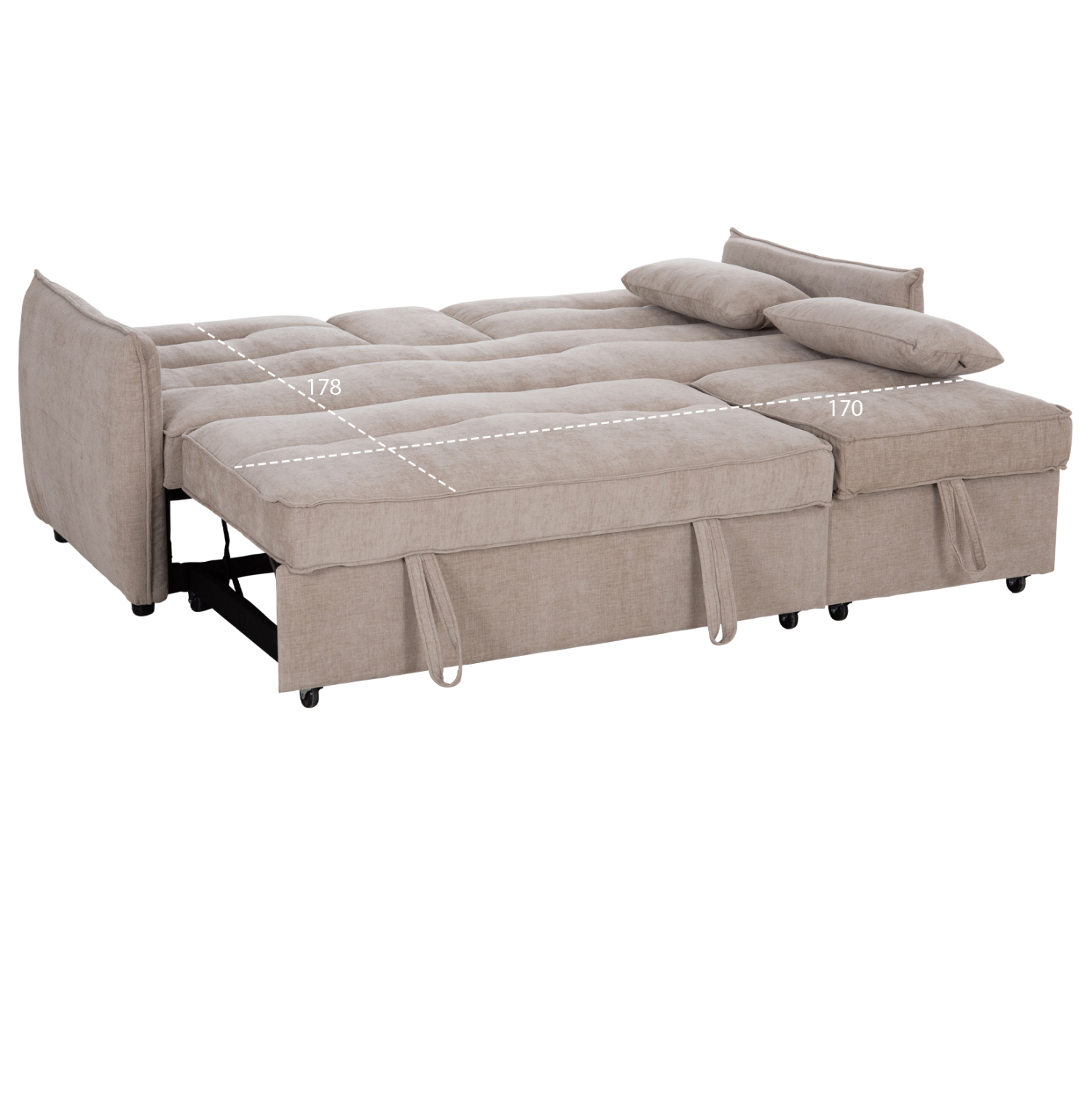 • Διπλός συρόμενος μηχανισμός: τα κρεβάτια τραβιούνται με ιμάντα κάτω από το κάθισμα.